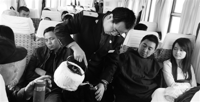 车刚开出站,乘务员已开始登记乘客的去向。列车长佟亮解释说,“登记乘客的去向目的主要有两个:一是了解乘客的去向,到站时提醒不要坐过站;二是登记重点乘客,做到重点旅客有登记、有服务、有交接。”