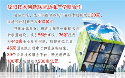 创建技术创新联盟,是沈阳市推动产学研合作的重要途径之一。去年以来,沈阳市组建各级产业技术创新联盟20家,搭建科技创新平台400多个。特别是IC装备、掘进设备等一批技术创新联盟建设,吸引了56所高校、36家院所和440家企业参与创建,联盟单位汇集45家国家级工程中心和重点实验室、39个公共技术服务平台,研发新产品106项,新增产值230多亿元。沈阳机床集团在本地创新联盟之外,还建立了四国五方创新联盟,目前取得了包括数控系统、五轴联动等核心技术的最新突破,成为自主创新的代表。
