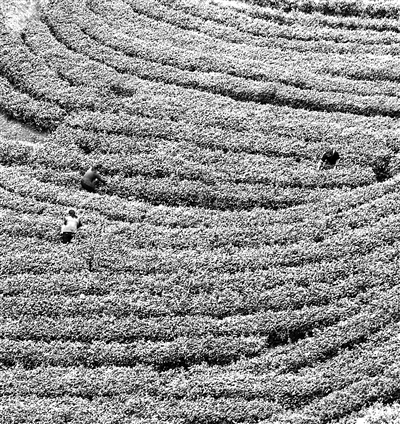 在江西省遂川县汤湖镇茶叶基地,采茶女正忙着采摘茶叶。驰名中外的“狗牯脑”茶叶进入采摘黄金期,本地采茶工数量难以满足需求,当地政府部门从周边市县引进5000多名采茶工,保证适时采摘。 李建平摄