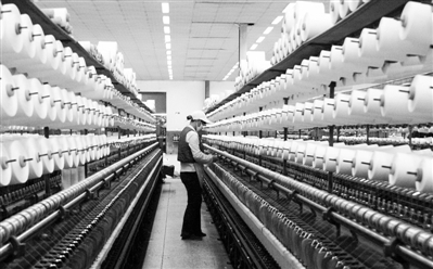 图为达佳纺织繁忙的生产车间,工人正在纺机前工作。江西达佳纺织有限公司总投资2亿元,年产4500吨抗菌、防紫外线、抗辐射等多功能特种纤维。企业凭借国际化的工厂及设备,在生产、营运贸易和服务的一体化赢得了客商的青睐和信任。 本报通讯员 陈 雅摄