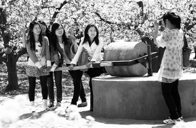 贾立蕊是该县东门村农民,她现在又是柏林禅寺的一名专职导游。“梨花节期间游人特别多,我一天能为好几拨游人讲解,能挣好几百元。”贾立蕊说,村里像她这样的导游共有三四十人,另外还有做文化用品销售的、专职摄影的,都沾了这几年迅速升温的旅游业的光,日子过得有滋有味。