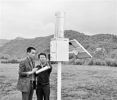 4月25日,工作人员在江西德兴泗州镇铜矿点采集自动雨量站的数据。江西省加大科技防汛投入力度,目前所有111个市县均建成山洪灾害预警系统。 胡敦煌摄(新华社发)