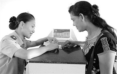 王华明所说的红徽章,其实是一枚小小的党徽。去年初,瑞丽边防检查站党委为进一步深化创先争优活动,要求全体党员“鲜红党徽戴起来,党员身份亮出来”,并向过境旅客公开服务承诺。