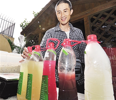 5月13日,来自北京的“米酒先生”售卖自产的米酒。当日,由众多志愿者自发组织的“天津绿色农夫市集”在天津奥城居住区开集,近20家商家售卖自产的农副产品,受到消费者的欢迎。 新华社记者 岳月伟摄