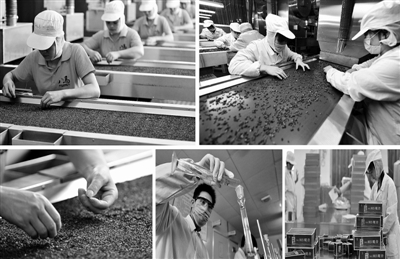 为了提高茶叶质量安全水平,一系列高端先进生产技术用在安溪铁观音的生产加工。这是安溪铁观音龙头企业中的先进铁观音茶叶生产线。