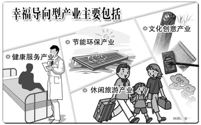 据了解,幸福导向型产业是指以满足人由生存到发展的多元幸福诉求为导向,以健康、绿色、时尚、智慧为特征的新兴产业。这类产业主要包括健康服务、智能安全监管、低碳环保、时尚创意、休闲旅游、数字娱乐、智慧化社会管理服务、心灵疗伤服务、网络教育以及智慧文化产业等。