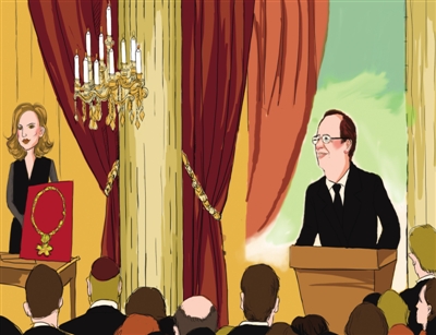法国当选总统奥朗德15日上午在爱丽舍宫宣誓就职。在演讲中,奥朗德誓言将承担起总统大任。由于奥朗德公开反对长期紧缩,提出重议欧盟“财政契约”,其上任后的经济政策走向备受关注。 新华社记者 高 微作