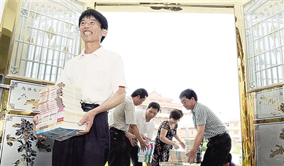 日前,记者来到福建南安市码头镇东大村时,正赶上该市李成智图书馆为村里的农家书屋送来了300多册图书。为解决农民“买书难、借书难、看书难”问题,李成智图书馆在当地10多个村庄的农家书屋设立了延伸服务点,根据各农家书屋的大小、需求量以及书屋提出的要求,按季度将200至3000册数量不等的书本发放到各延伸服务点。据了解,南安市充分发挥市图书馆和李成智图书馆的带动支撑作用,积极探索“大馆带小屋”农家书屋建设新路子,分区域在全市农家书屋设立流动分馆,让有限的图书真正流动起来。目前,南安市图书分馆,覆盖全市80多个村,为每个农家书屋配置图书500册,每季度更换一次,每次更新图书300多册,仅2011年就流动更新图书15万多册,农民群众借阅图书60多万次。