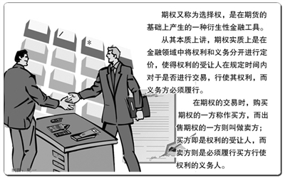 在回答期权是什么这个问题的时候,魏振祥喜欢打这样一个比方,“你想买一套房子,谈好了价格是3000元一平方米,并预付了2万元的定金,这就是期权的雏形”。