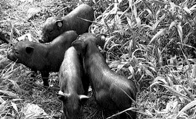 5月的从江,桃红柳绿。在贵州省从江县西部茫茫的月亮山,成群结队的香猪憨态可掬地在荆棘草丛之中闪现。