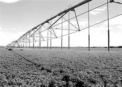 河北张家口市察北管理区马铃薯种植基地使用指针式喷灌机进行灌溉。 袁明海摄