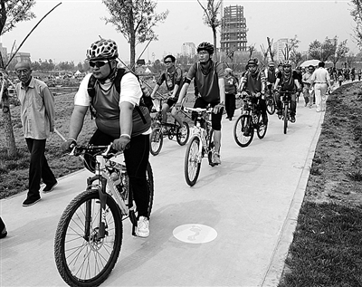 5月19日,许多北京市民选择以“三公里步行、五公里骑车、十公里公交、远距离绿色驾驶”为口号的“3510”绿色出行方式,感受京西门头沟美景。