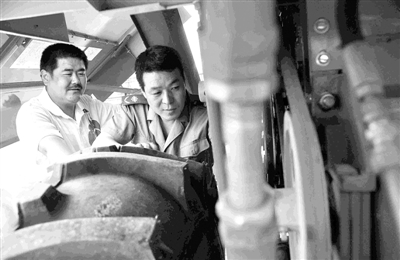 上图 山东省滨州市滨城区农机局日前启动“上门检修,备战‘三夏’”服务活动,组织农机检修人员奔赴各乡镇,进村入户上门开展免费检修服务,以确保各类机械以良好状态投入农业生产。图为农机维修人员耿雪松(右)和云泉农机合作社农机手姜海军正在对小麦联合收割机传输带进行检修。