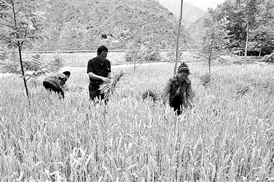 进入5月份以来,甘肃文县小麦由南向北全面开镰收割。 本报记者 李琛奇 通讯员 路永安摄影报道