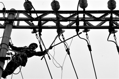 5月24日,福建省建宁县供电公司电力工人在110千伏变电站进行停电升级改造。