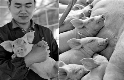 福建省邵武市养殖户林恩宁在观察猪崽的生长情况。进入3月以来,全国各地生猪价格持续下滑。目前众多养殖户正在积极采取措施,应对新一轮“猪周期”。 新华社记者 张国俊摄