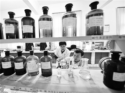 中石化河南南阳石油分公司员工正在化验储备柴油质量,确保农机“三夏”生产用油需求。目前,中石化南阳石油分公司已储备20万吨柴油汽油,优先向麦收重点区域和农村站点倾斜。 本报记者王 伟 通讯员崔培林摄影报道