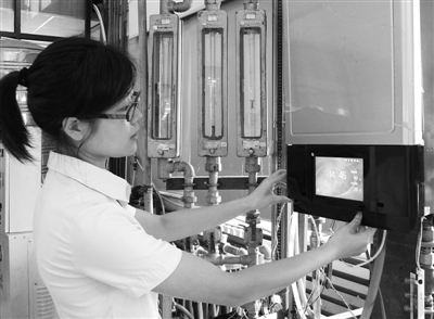 面对国际上正在兴起的家居智能化浪潮,国内主流厨卫企业加大了智能产品的开发力度。图为广东万家乐燃气具有限公司燃热研发部技术人员在试验一款带有触摸屏的HV7A智能浴热水器。