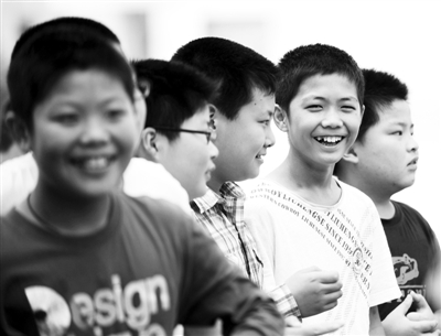 今年12岁的吴洋锦华2007年随打工的父母从江西丰城来到南昌市青云谱区读书,现就读象湖实验学校六年级二班。开始进城的吴洋锦华对周围的环境感到陌生,成绩也不理想。“现在交到了好多朋友,可以经常抽空一起打篮球。”吴洋锦华说,他最喜欢的运动是打篮球和跑步。因为组织能力较强,吴洋锦华现在担任班级体育委员,更加自信和乐观的他从小学四年级开始成绩不断进步。“现在班上排名进前五了,还获得全国少年金杯作文金奖。”班主任老师介绍说。还有一个多月就要上初中,吴洋锦华希望通过自己的努力考上一所好的学校,只要分数上了线,他和城里其他孩子一样可以上一所好的学校读书。图为吴洋锦华(右二)在体育课上(5月22日摄)。 新华社记者 周 科摄