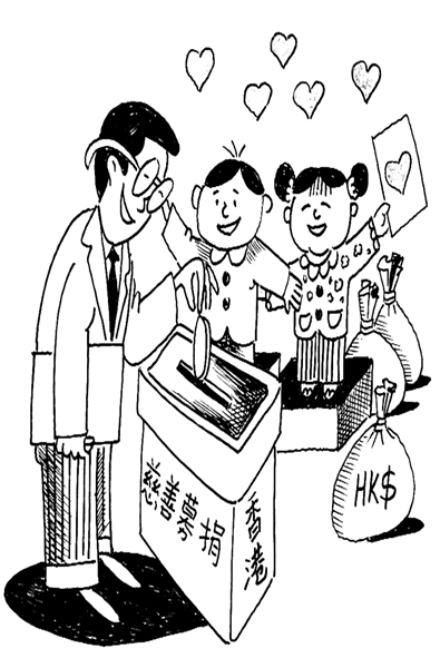 在香港,每周六的清晨,都有许多志愿者在“卖旗”,为慈善募捐。“卖旗”者有慈善团体的成员,有穿着校服的中小学生,还有幼稚园的孩子。