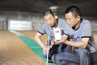 在中储粮安徽白湖粮库,工作人员每日测温,密切观察储粮品质变化情况,确保储粮安全。