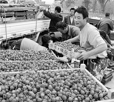 受降雨影响,山东省乳山市今年大樱桃产量降低近三成。图为5月30日,外地收购商在乳山市崖子镇收购大樱桃。 本报记者 单保江 通讯员刘振杰摄影报道
