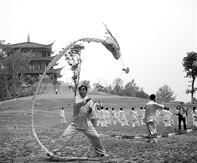 古淮河文化生态景区位于江苏淮安市清河新区,于2008年9月初建成开放,2010年以来成功创建为国家4A级旅游景区和江苏省自驾游基地。图为市民在古淮河文化生态景区锻炼身体。 本报记者 张 欣摄