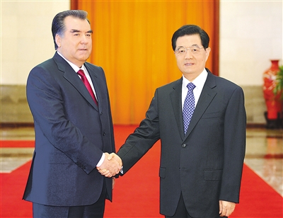 胡锦涛指出,中塔建交20年来,双方始终相互尊重、平等相待、真诚合作、互帮互助,两国关系发展卓有成效,给两国人民带来实实在在的利益。中方将一如既往支持塔方走符合本国国情的发展道路,愿同塔方共同努力,全面提升中塔睦邻友好合作关系水平。