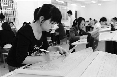 图为重庆水利电力职业技术学院的高职学生在绘图实训。
