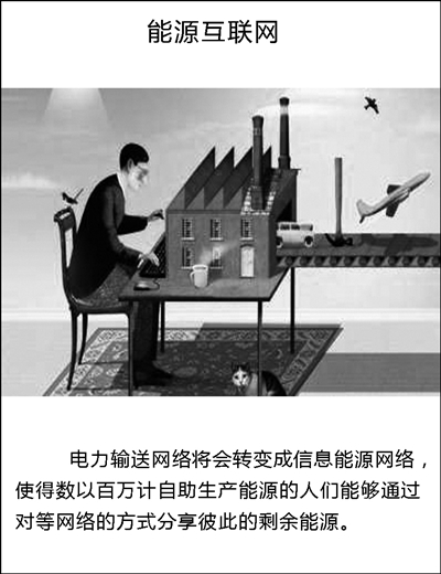 电力输送网络将会转变成信息能源网络,使得数以百万计自助生产能源的人们能够通过对等网络的方式分享彼此的剩余能源。