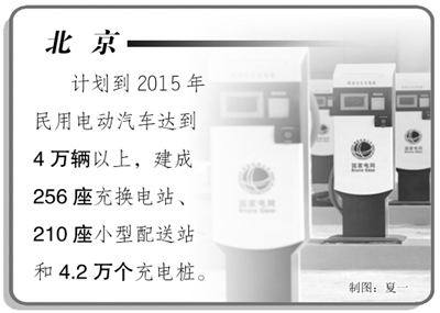 《北京市“十二五”时期新能源发展建设规划》中提出,计划到2015年民用电动汽车达到4万辆以上。届时,北京将建成256座充换电站、210座小型配送站和4.2万个充电桩,满足所有类型电动车的充换电需求。