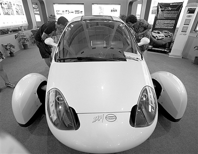 6月9日,在第11届中国国际日用消费品博览会上,由浙江一家企业制造的一辆新能源电动汽车引起参观者兴趣。该汽车由一种新型复合材料制造而成,具有质量轻、耐冲击、低成本、高强度等特点。