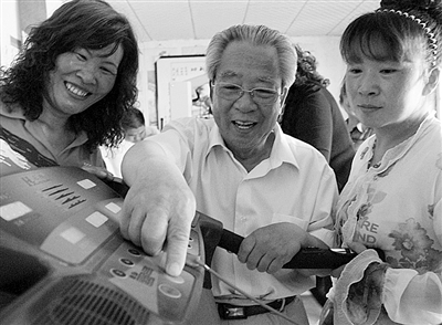 日前,由一位乡村老医生开设的山东滨州市博兴县曹王镇西孙村“中老年活动中心”正式落成并免费向乡亲们开放。这座“中老年活动中心”占地1200平方米,设室内跑步机、踏步机、举重哑铃、室外篮球架、乒乓球桌等20余种健身器材。图为老医生孙肇银(中)在指导乡亲调试跑步机锻炼身体。