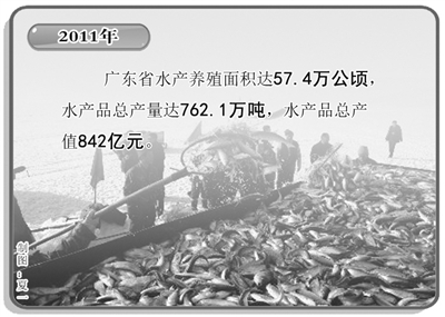 据悉,作为水产养殖大省,广东在2011年的水产养殖面积达57.4万公顷,水产品总产量达762.1万吨,水产品总产值842亿元。不少业内人士表示,广东今年重金建设双节双高渔业示范园区,发力打造“碳汇渔业”,意味着广东传统渔业生产方式变革即将到来,广东渔业将走进低碳、高效和可持续发展时代。