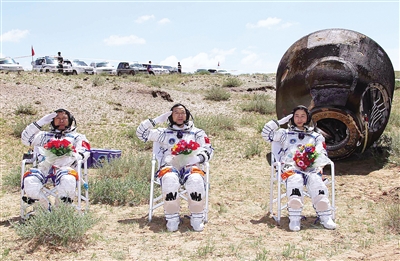 “我们圆满顺利地完成了我国首次载人交会对接任务,现在我们平安的到家了。感谢祖国,感谢全国各族人民对我的关爱。”熟悉的微笑后,两度飞天的景海鹏献上了一个庄严的军礼。