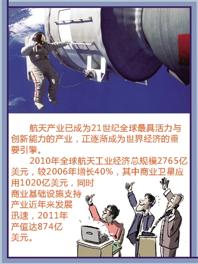 当前,全球航天产业增长速度为10%左右,高于GDP增速1倍以上。我国航天产业近5年的增长速度为25%,也远高于同期GDP的增长。中国航天科技集团公司系统科学与工程研究院院长王崑声介绍,目前我国已有2000多项航天技术成果移植到国民经济各个部门,民用航天产值已占据航天总产值的一半,投入产出比高达1∶10。