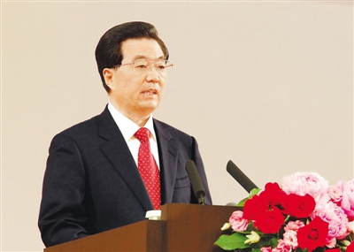 在热烈的掌声中,胡锦涛发表了重要讲话。他代表中央政府和全国各族人民,向全体香港市民致以诚挚问候,向刚刚宣誓就职的香港特别行政区第四任行政长官梁振英先生和第四届政府主要官员、行政会议成员表示热烈祝贺,向所有关心香港、为香港顺利回归并保持繁荣稳定作出贡献的海内外同胞和国际友人表示衷心感谢。
