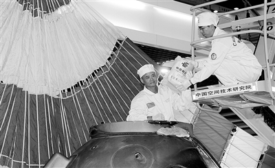 7月1日,工作人员从神舟九号返回舱内取出搭载物品。当日,中国载人航天工程办公室和中国航天科技集团公司在北京举行神舟九号返回舱开舱仪式,与研制单位和搭载单位代表一道,共同迎接神舟九号返回舱“回家”,并将搭载物品移交给各搭载单位。 新华社记者 金良快摄
