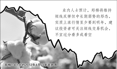 “郑棉将维持短线反弹但中长期弱势的形态。实质上涨行情至少要到明年才会出现。主要原因是库存过高,需要消化。”见惊雷说。
