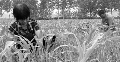 上图 7月2日,河南省商水县固墙镇毛屯村的农民在田间忙碌。前几天的连续降雨,使商水县120多万亩农作物旱情得到有效缓解,商水县农业部门积极动员指导广大农民抓紧当前有利条件,及时开展补苗、施肥等秋季农作物田间管理。 吕耀光摄