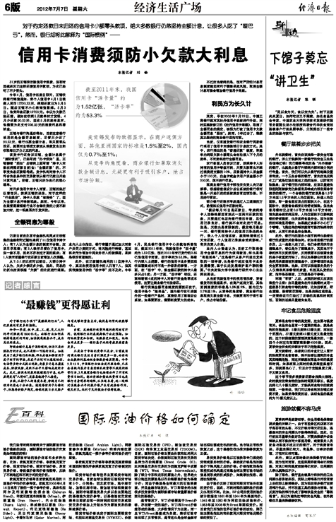 此外,在记者随机询问的11位持卡人中,真正在使用信用卡的人只有7人,但其实我国信用卡的“活卡率”远不及此。今年4月,民生银行信用卡中心总裁杨科曾指出,截至2011年末,我国信用卡“活卡量”约为1.52亿张,相比2011年末已发行的2.85亿张信用卡而言,活卡率约为53.3%。某银行内部人士透露,银行的信用卡业务要实现收益覆盖成本并不是一件容易的事情,一方面,在“活卡”中,能全额还款的持卡人最多只占6成;另一方面,“活卡率”较低,还意味着超4成的持卡人对银行资金是零成本使用,这更让商业银行无法容忍。