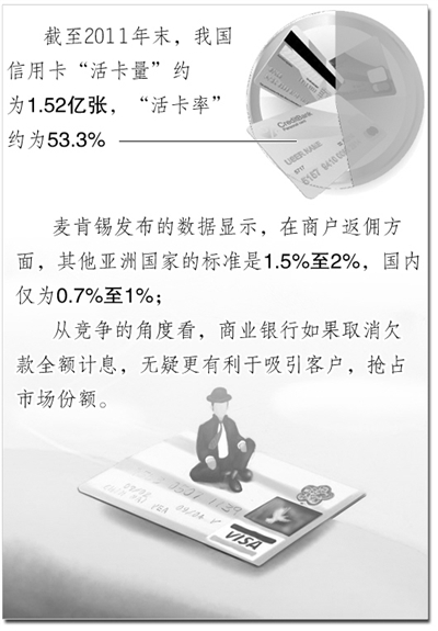 从当前我国信用卡的使用情况看,麦肯锡发布的数据显示,在商户返佣方面,其他亚洲国家的标准是1.5%至2%,国内仅为0.7%至1%;从竞争的角度看,商业银行如果取消欠款全额计息,无疑更有利于吸引客户,抢占市场份额。