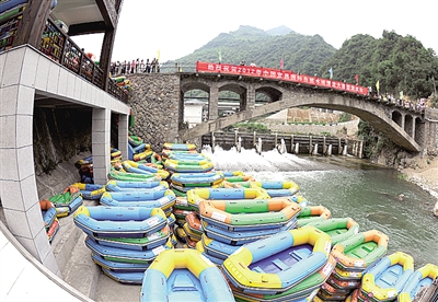 图⑥:兴山县朝天吼漂流景区,小小的橡皮艇带动了一方经济发展,成为了百姓的“致富船”。