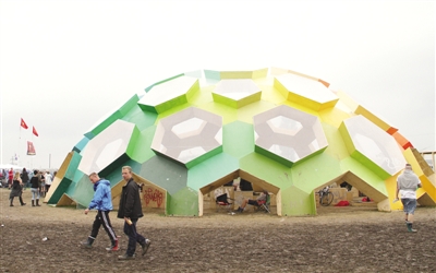 一年一度的罗斯基勒音乐节在丹麦首都哥本哈根以西约40公里的古城罗斯基勒举行,来自世界各地的200多支乐队在这里为近8万名乐迷奉献了约200场演出。图为音乐节的青年休闲娱乐中心采用了自然采光照明的独特设计,体现了环保节能的理念。 新华社发