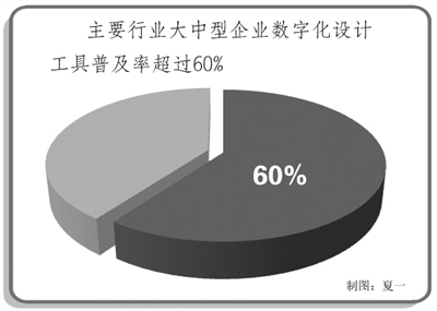 据统计,目前工业企业普遍利用计算机辅助设计、系统仿真等技术开展研发设计,主要行业大中型企业数字化设计工具普及率超过60%。信息技术极大推动了工业制造产品从技术含量低、附加值低的产品向高技术、高附加值产品升级,“两化”融合已经成为“中国制造”向“中国创造”跨越的重要支撑。