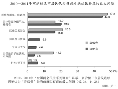 据统计,2011年,我国医院门诊病人次均医药费用为179.8元,住院病人人均医药费用6632.2元。一次住院费接近城镇居民年人均收入的三分之一,几乎相当于农民一年的人均纯收入。可见,医药费用是群众生活中一项沉重的负担,无怪乎人们看病住院时都会感慨“真的病不起”。