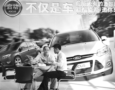 7月10日,消费者在广州一家汽车4S店和销售人员洽谈。广州限购汽车政策实施细则于10日正式对外公布,广州市将采取“有偿竞拍+无偿摇号”的指标分配模式。 新华社记者 陈晔华摄