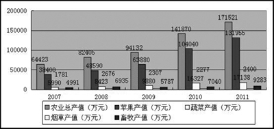 陕西延安市富县,古为鄜州,位于延安市南部,总面积4182平方公里,居延安市第一,陕西省第五。辖9镇1乡3个社区服务中心,240个行政村,总人口15.2万人,其中农业人口11.3万人。境内川塬相间,土地肥沃,是世界苹果最佳优质产区之一,中国优质苹果基地重点县,中国苹果二十强县。近年来,县委、县政府坚持将农业产业化建设放在突出位置,按照“三化同步”要求,积极发展现代农业,先后实施了塬区产业提升、川道产业开发和标准化规模养猪等农村产业开发工程,农业产值和增加值不断提高。基本形成了以苹果为主导,蔬菜、烟草、畜牧为补充的农业产业格局。目前,全县苹果总面积36.2万亩,挂果面积27万亩,年产苹果45万吨以上,优果率达到80%;蔬菜种植面积3.22万亩,其中设施蔬菜面积1万亩;烟叶栽植面积2万亩,年产烤烟2000吨以上;生猪饲养量达11.2万头,家禽饲养量达45万只。