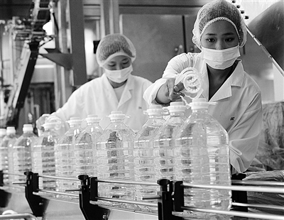 近期食用油市场再现价格上调,据报道,鲁花花生油上涨15%、金龙鱼花生油上涨8%、福临门等品牌也有一定涨幅。图为广西钦州港经济开发区内的一家食用油企业生产车间。 本报记者 赵 晶摄