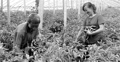 甘肃泾川县汭丰乡郑家沟村菜农单存贵正在大棚里摘辣椒。今年甘肃泾川县种植的18000亩辣椒喜获丰收,平均亩产辣椒超过3000公斤,预计实现产值5000余万元,可带动1200余户农民增收4000元以上。